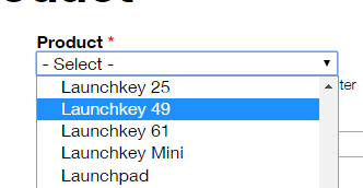 1. גלשו לכתובת https://customer.novationmusic.com/en/register, ובחרו מתיבת "Product" את המוצר שרכשתם.