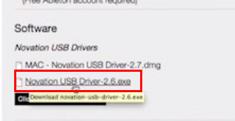 8. ברשימה שנפתחה נאתר את הקובץ "Novation USB Driver-2.6.exe" ונלחץ עליו להורדה.